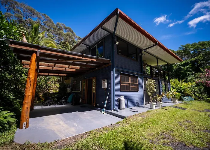 Das 1-Zimmer-Tranquil Rainforest Studio Kuranda in Kuranda liegt 30 km vom Flughafen Cairns entfernt. Das Apartment hat eine Terrasse mit auf Blick den Garten.